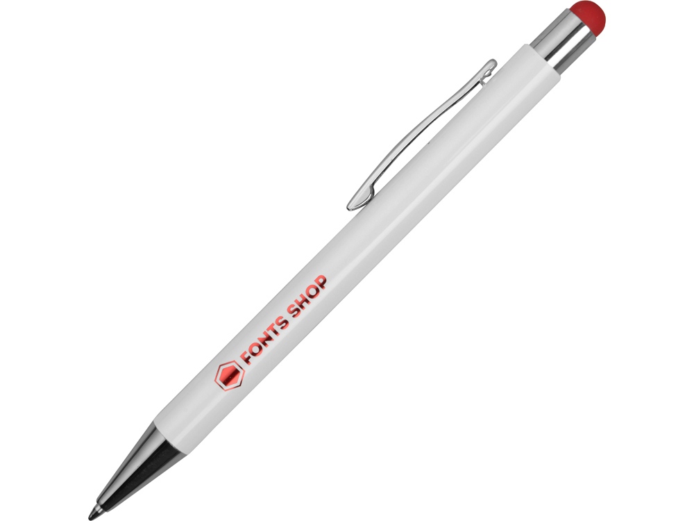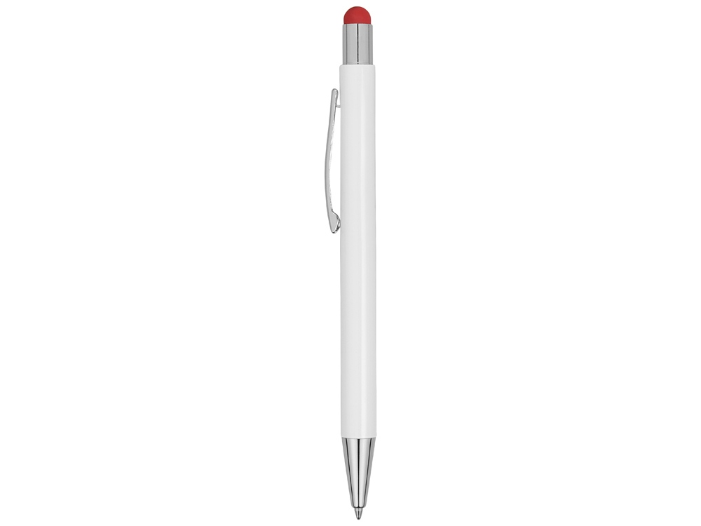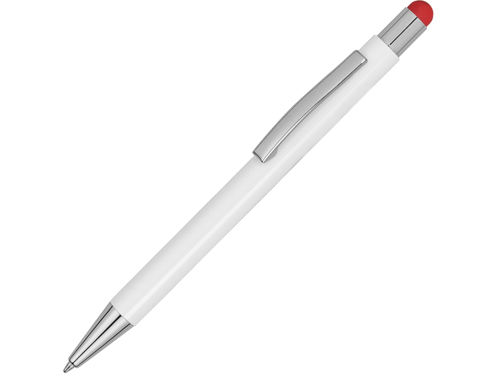 Металлическая шариковая ручка-стилус с нажимным механизмом. Под лакированным белым покрытием корпуса скрыт цветной зеркальный слой, раскрываемый в процессе гравировки. Зеркальный слой и стилус выполнены в едином цвете.