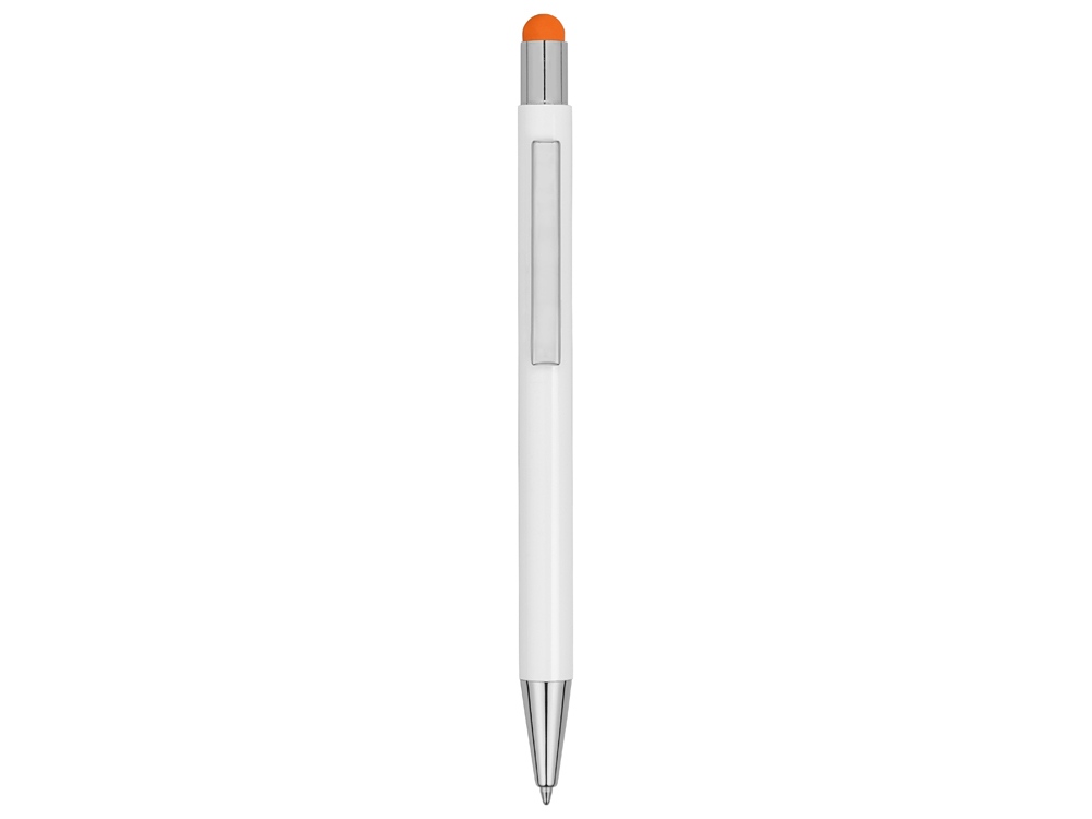 Металлическая шариковая ручка-стилус с нажимным механизмом. Под лакированным белым покрытием корпуса скрыт цветной зеркальный слой, раскрываемый в процессе гравировки. Зеркальный слой и стилус выполнены в едином цвете.