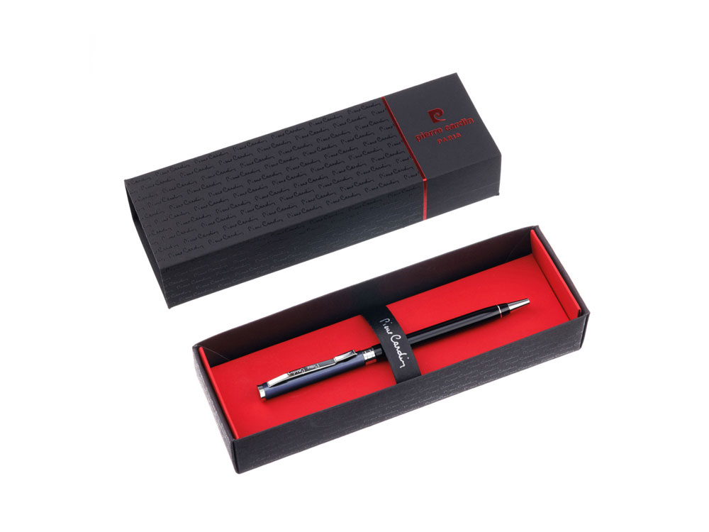 Шариковая ручка Pierre Cardin GAMME • Корпус - алюминий. Цвет - черный/колпачок "синий металлик"; • Отделка - лаковое покрытие; • Детали дизайна - латунь/сталь/хром; • Упаковка в ассортименте: - картонная коробочка черного цвета с картонным ложементом красного цвета. Размер 175 х 55 х 35 мм, вес 35 гр - пластиковая коробочка черного цвета с бархатистым ложементом черного цвета. Размер 185 х 66 х 30 мм, вес 101 гр Комплектация: • Металлический шариковый стержень с логотипом Pierre Cardin на корпусе, с чернилами синего цвета; • Инструкция по использованию ручки. Экономичные ручки Pierre Cardin серии GAMME - прекрасное начало для больших дел! Большое всегда начинается с малого! Широкая гамма отделок и элементов дизайна, разнообразие форм и размеров, неповторимое сочетание стилей все это создает новый уровень элегантности по доступной цене.