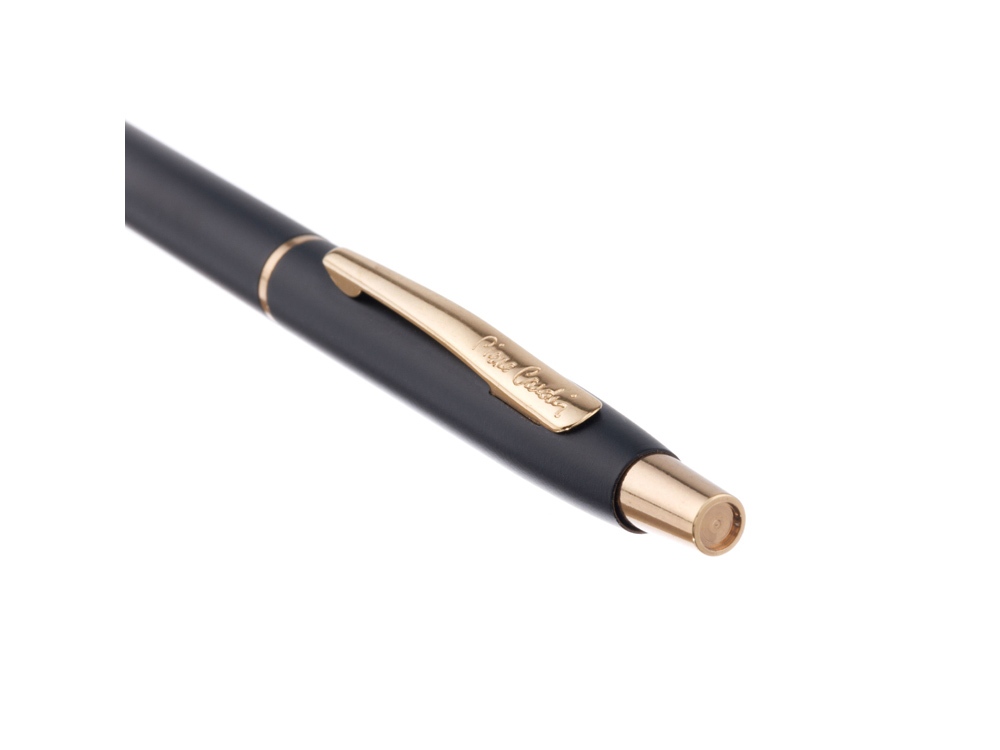 Шариковая ручка Pierre Cardin GAMME • Корпус - латунь. Цвет - черный; • Отделка - матовая; • Детали дизайна - золотистого цвета; • Упаковка - картонная коробочка черного цвета с картонным ложементом красного цвета; • Размер упаковки -175 х 55 х 35 мм, вес 35 гр Комплектация: • Металлический шариковый стержень с логотипом Pierre Cardin на корпусе с чернилами синего цвета; • Инструкция по использованию ручки. Экономичные ручки Pierre Cardin серии GAMME - прекрасное начало для больших дел! Большое всегда начинается с малого! Широкая гамма отделок и элементов дизайна, разнообразие форм и размеров, неповторимое сочетание стилей все это создает новый уровень элегантности по доступной цене.