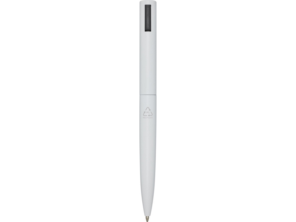 Шариковая ручка, верхняя часть корпуса которой изготовлена из переработанного пластика, а нижняя часть — из переработанного алюминия. Зажим изготовлен из железа. Цвет чернил: черный. Длина непрерывной линии: 1000 метров. Размер пера: 1,0 мм. Recycled Aluminium.