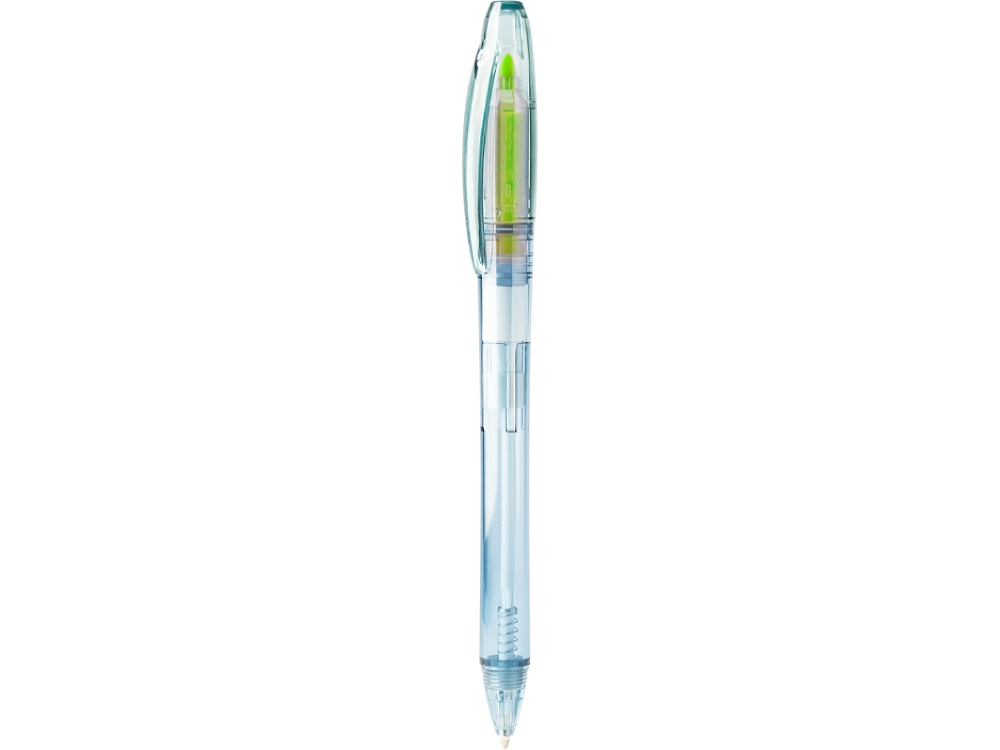 Ручка/маркер с синим прозрачным корпусом и маркером доступна в трех флуоресцентных цветах.