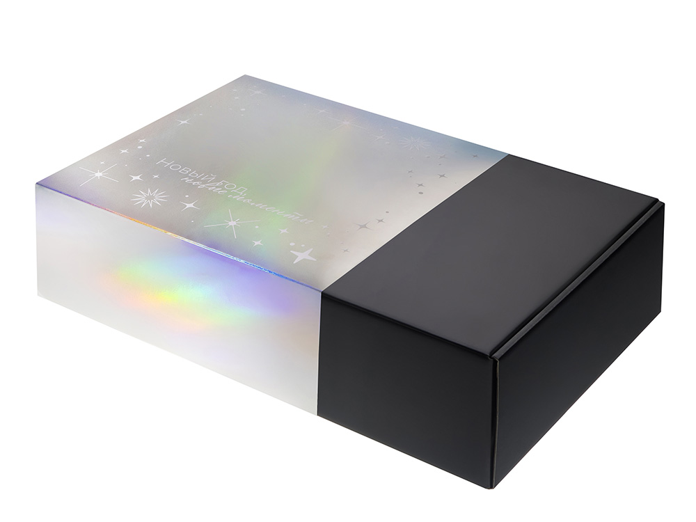 Упаковка — это первое впечатление о подарке. В преддверии Нового года особенно важно создать атмосферу праздника — стильная и аккуратно выполненная коробка с голографическим шубером сразу вызывает ощущение заботы, уюта и волшебного ожидания. Подарочная коробка из прочного микрогофрокартона, кашированная бумагой с матовой ламинацией, выглядит элегантно и надёжно защищает содержимое. Новогодний голографический шубер с мерцающими серебристыми переливами придаёт ей праздничный блеск и делает каждый подарок по-настоящему особенным. В такую коробку можно поместить сувениры, кружку, баночку мёда или варенья, а добавив декоративный наполнитель — подчеркнуть изысканность и тёплое новогоднее настроение. Коробка отлично подходит под нанесение логотипа или фирменного дизайна, чтобы ваш подарок не только порадовал получателя, но и напомнил о компании или событии ещё долго после праздников.